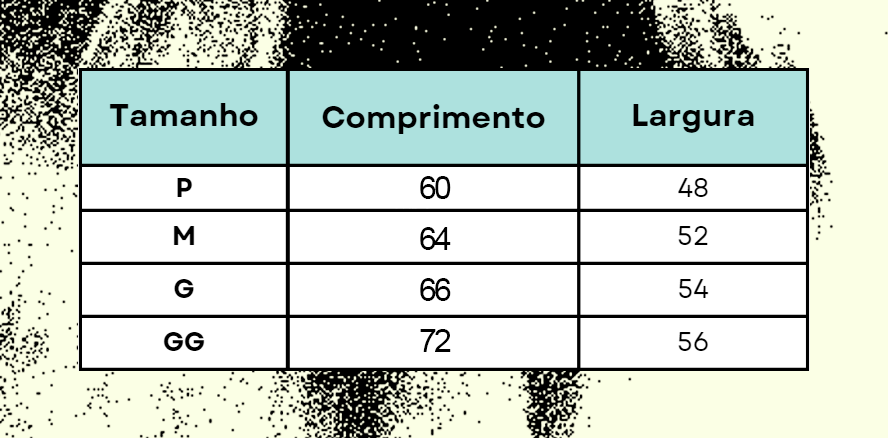 - Em caso de dúvidas sobre o tamanho, procure optar pelo tamanho maior.